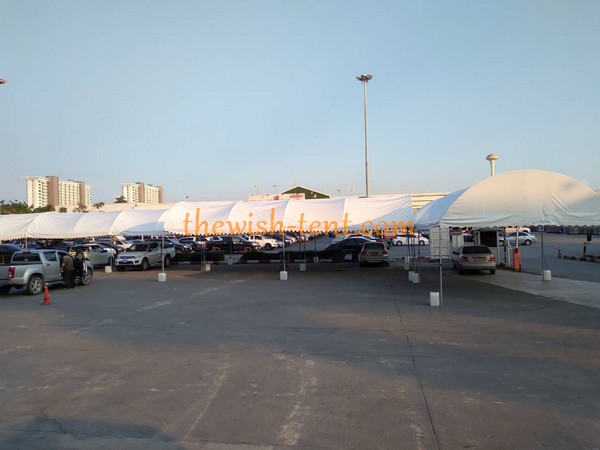 บริการ ให้เช่าเต็นท์ ลูกค้าเช่าเต็นท์ขนาด 5 คูณ 12 เมตร จำนวน 6 หลัง ติดตั้งบริเวณหน้าแม็คโครศรีนครินทร์
