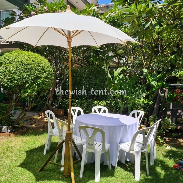เช่าโต๊ะจีนคลุมผ้าขาว เช่าโต๊ะจีนคลุม-ผ้าสีขาว พร้อมเก้าอี้พลาสติก ไม่คลุมผ้า 1 ชุด มีโต๊ะจีนขนาดเส้นผ่าศูนย์กลาง 1.20 ม. พร้อมเก้าอี้พลาสติกสีขาว 8 ตัว ราคาชุดละ 300 บาทต่อวัน