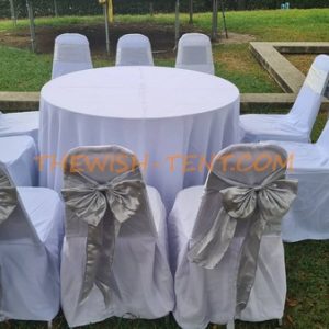 เช่าชุดโต๊ะจีน-1.5ม.+เก้าอี้บุนวมคลุมผ้าสีขาว+โบว์สีน้ำเงิน เช่าโต๊ะจีน ให้เช่าโต๊ะจีน ประกอบด้วย โต๊ะกลมกลาง ขนาด 1.50 ม. คลุมผ้าขาว พร้อมเก้าอี้บุนวมคลุมผ้าสีขาว 10 ตัว + โบว์สีน้ำเงิน ราคาชุดละ 750 บาท