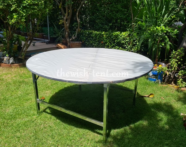 เช่าโต๊ะจีนกลม-1.5เมตร เช่าโต๊ะจีนกลมไม่คลุมผ้า ขนาดเส้นผ่าศูนย์กลาง 1.50 ม.สีขาว ราคาตัวละ 200 บาทต่อวัน