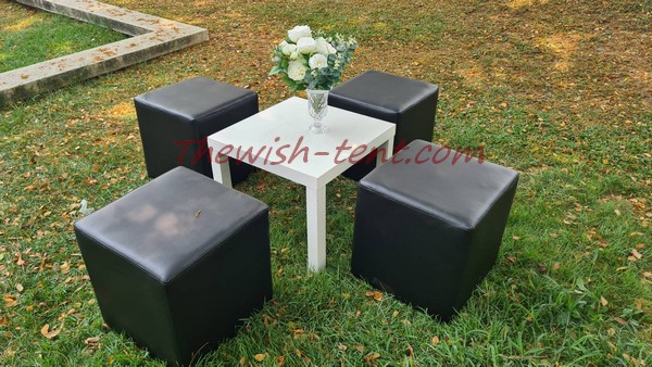 บริการให้ ให้เช่าเก้าอี้-ลูกเต๋าสีดำ 4 ที่นั่ง 5 ชิ้น สีดำ หนึ่งชุดมี เก้าอี้ลูกเต๋า 4 ตัว โต๊ะกลางสีขาว 1 ตัว ราคาชุดละ 500 บาท พร้อมมีบริการให้เช่าเต็นท์ขาวสะอาด และอุปกรณ์จัดงานครบวงจรคุณภาพดีมีจำนวนมากส่งเร็วตรงเวลา เช่าโต๊ะ เช่าเก้าอี้ เช่าเต็นท์ บริการ – เช่าเต็นท์, เช่าเก้าอี้, เช่าโต๊ะ