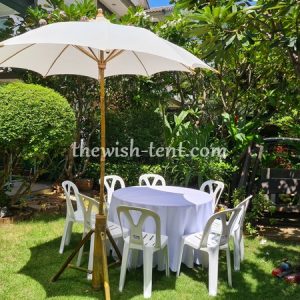 เช่าโต๊ะ-โต๊ะจีน1.5ม.คลุมผ้าขาว+เก้าอี้พลาสติกไม่คลุมผ้า